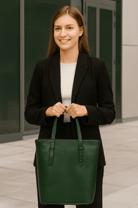 Stylish design: The Akron Leather Tote Bag features a beautiful green color that is perfect for all seasons. The bag has a classic and timeless design that will never go out of style.