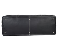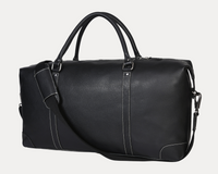 Crafted from premium black top-grain leather, this sleek duffle bag is your perfect travel partner. With a spacious interior, metal feet, contrast stitching, and both hand and shoulder straps, it combines durability with style for any journey.
