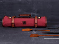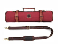 - Handcrafted from Premium Quality High Density Waxed Canvas and stitched by Skilled Craftsmen. 2 Classy Buckles Closure form a tight Roll along with a 2" Wide Webbed Shoulder Strap for ease in carrying the Knife Roll.