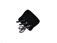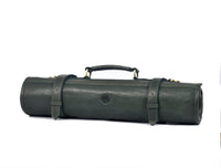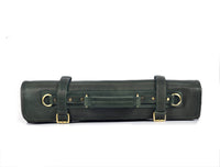 - Handcrafted from Premium Quality Leather and precision stitched by Skilled Craftsmen for durability and appeal. Twin Buckles Closure form a tight Roll along with a 2" Wide Webbed Shoulder Strap for ease in carrying the Knife Roll.