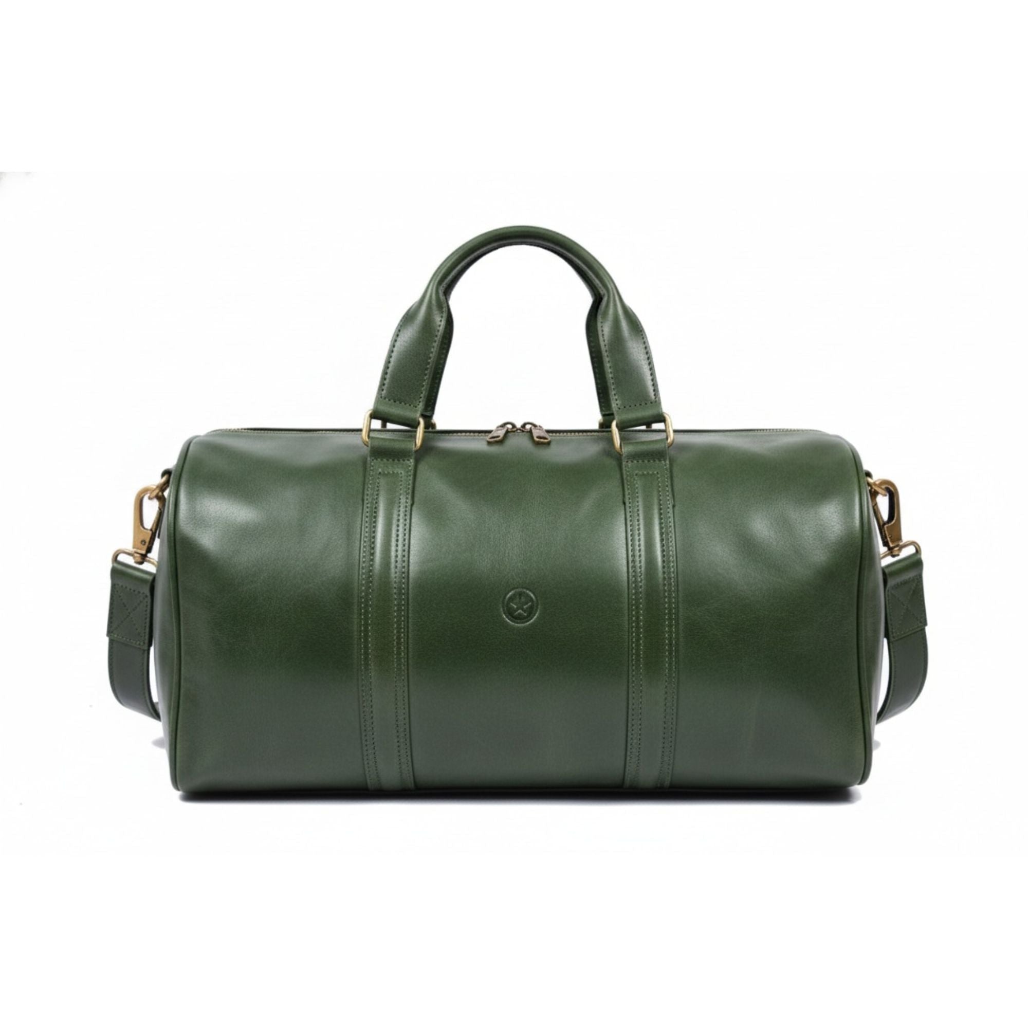 Green Leather Duffle Bag for Travel & Gym – Premium Finish