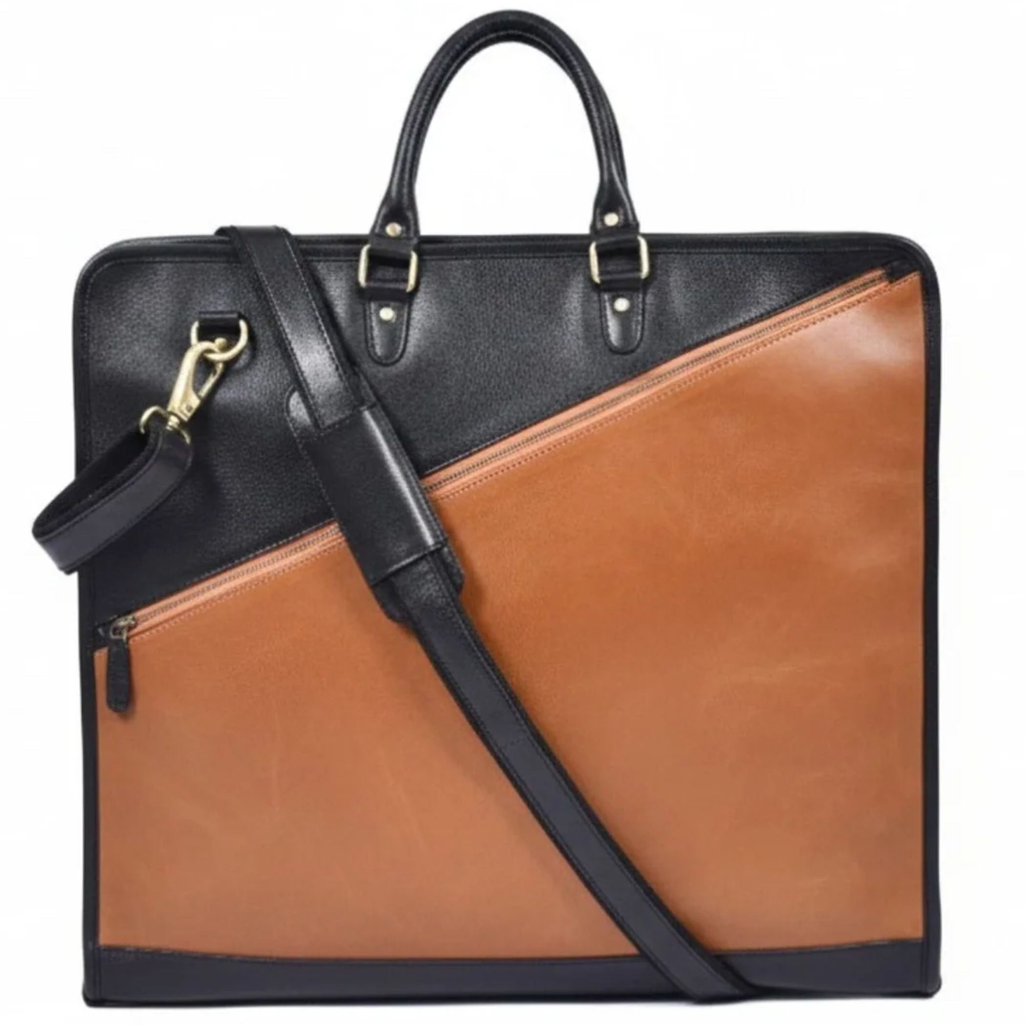 Tan & Black Leather Garment Bag