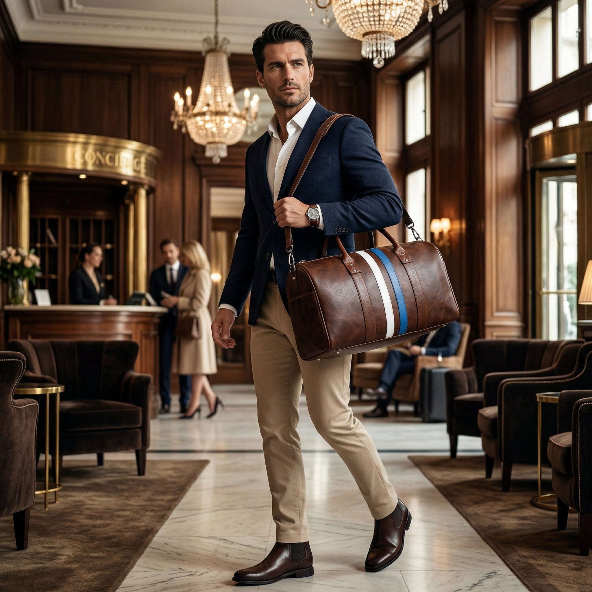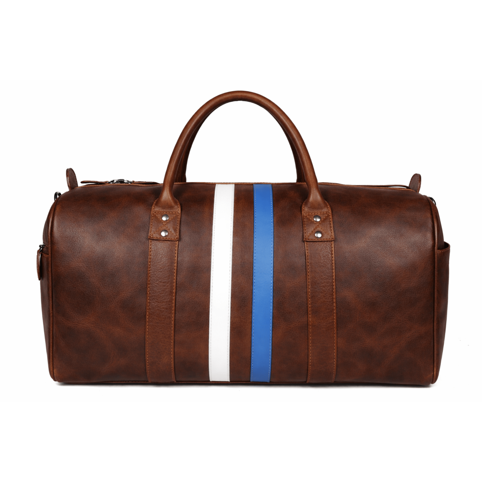 Brown Leather Duffle Bag with Stripe Detail