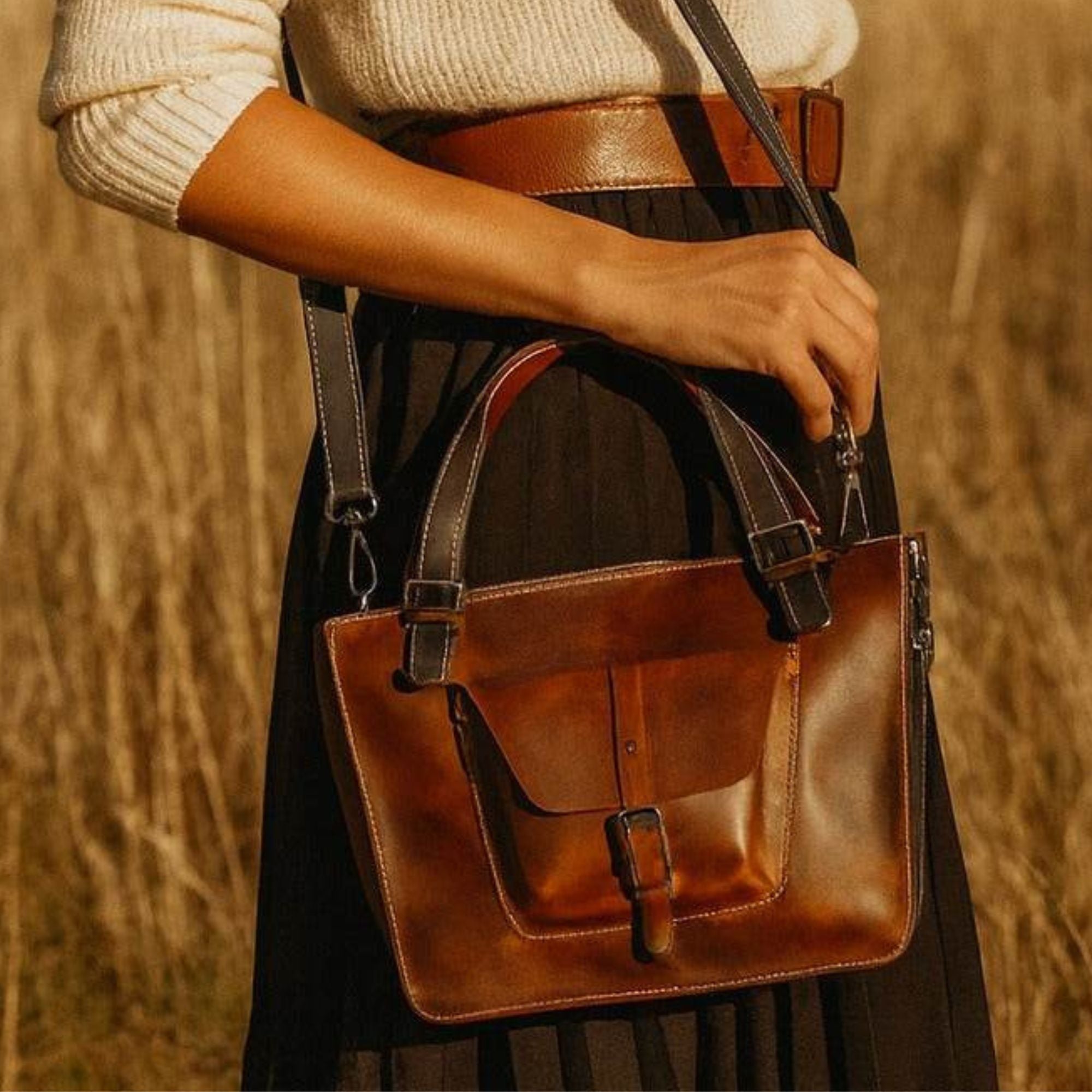 Handmade Vintage Leather Tote Bag for Women – Rustic Satchel Shoulder Handbag with Crossbody Strap & Detachable Pouch – Stylish Work & Travel Laptop Bag