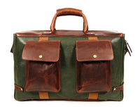 Upgrade your travel style with this handcrafted Leather Duffle Bag, designed to blend timeless aesthetics with practical functionality. Made from 100% full-grain buffalo leather, this green and brown duffle bag offers durability, elegance, and organization – all in one sophisticated design.