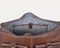 Crafted from premium full-grain leather, this timeless duffle bag combines elegance with function. Ideal for weekend getaways or business trips, it features dual front pockets, spacious interiors with striped lining, and a detachable shoulder strap for versatile carry options. A perfect companion for the discerning traveler