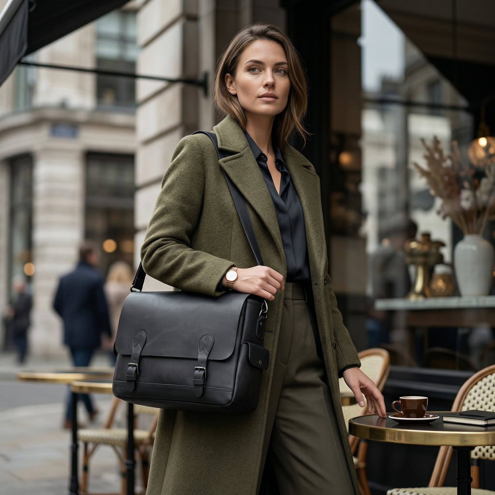 Madrid Leather Messenger Bag - Black