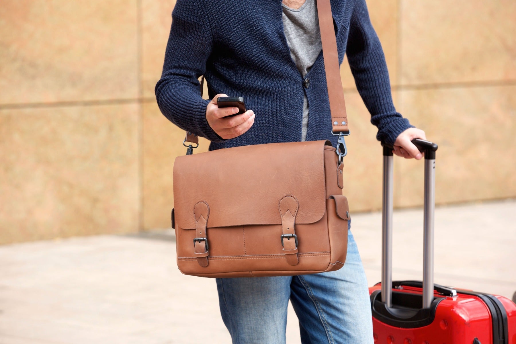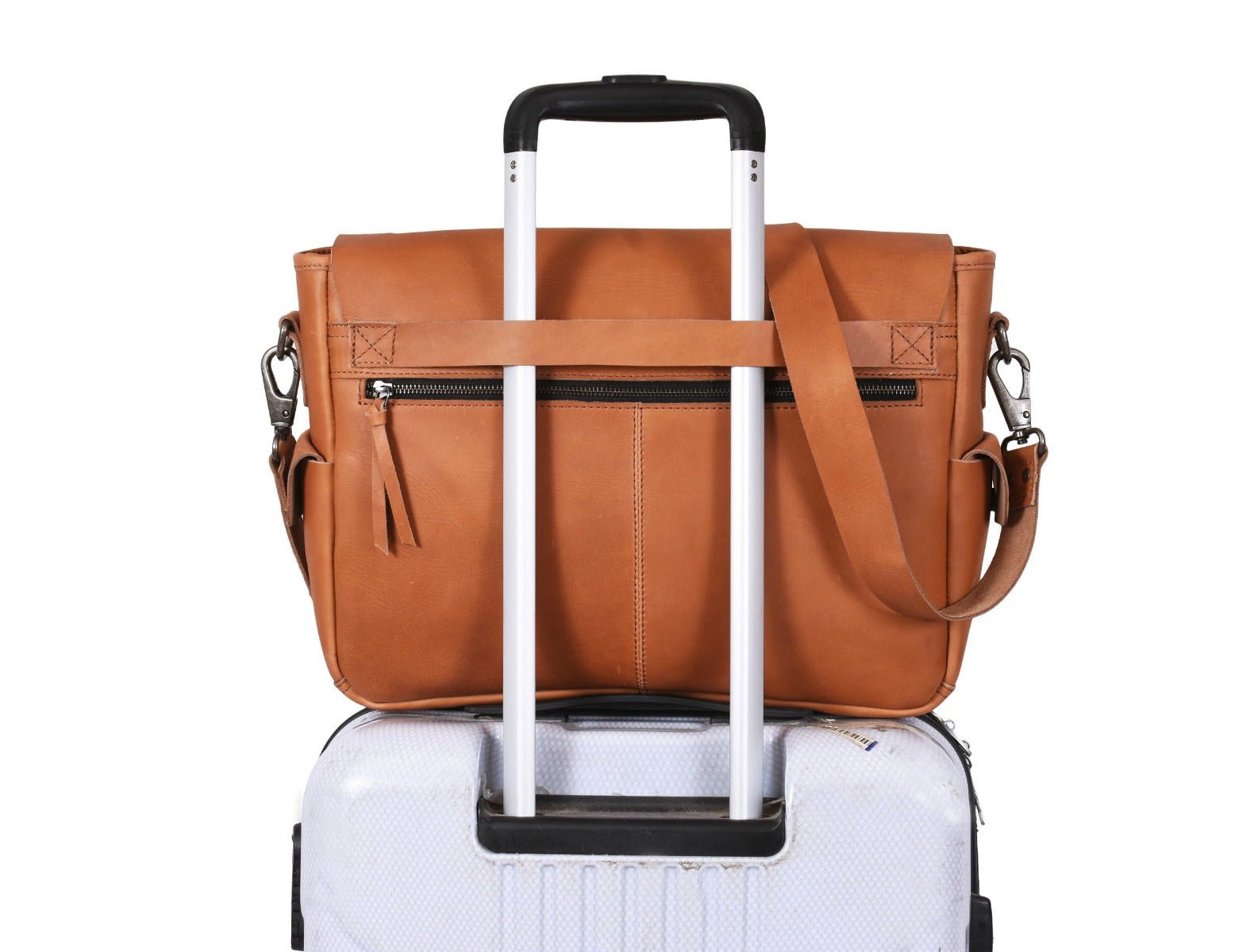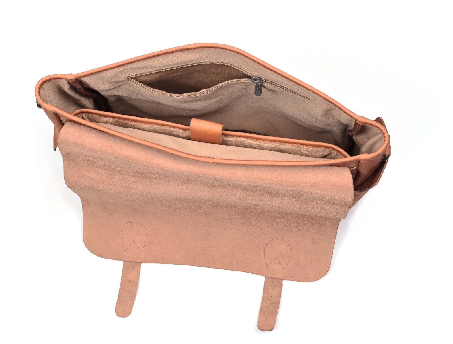 Classic Tan Full-Grain Leather Messenger Bag with Buckle Closure