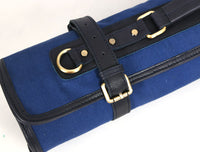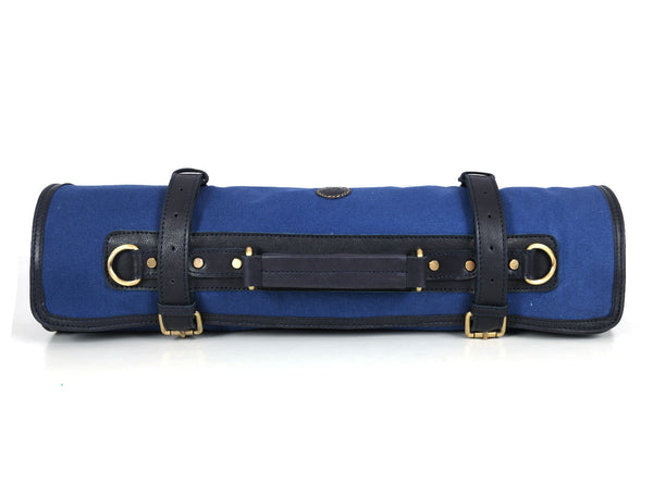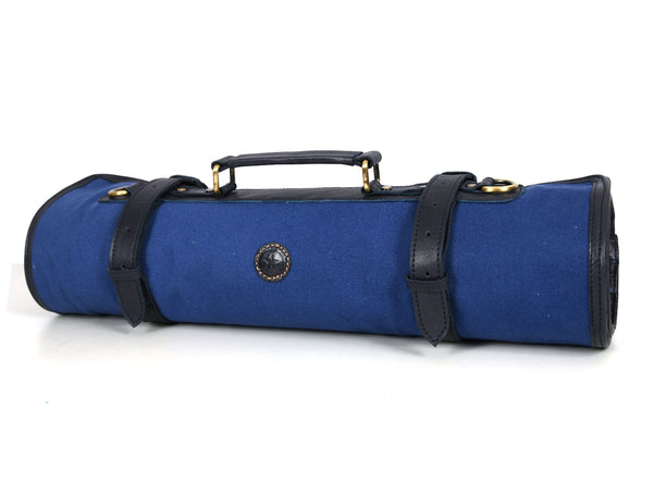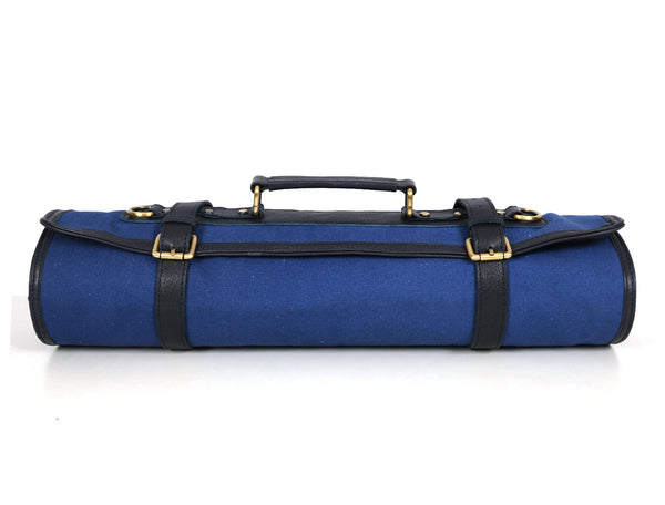 - Handcrafted from Premium Quality High Density Waxed Canvas and stitched by Skilled Craftsmen. 2 Classy Buckles Closure form a tight Roll along with a 2" Wide Webbed Shoulder Strap for ease in carrying the Knife Roll.