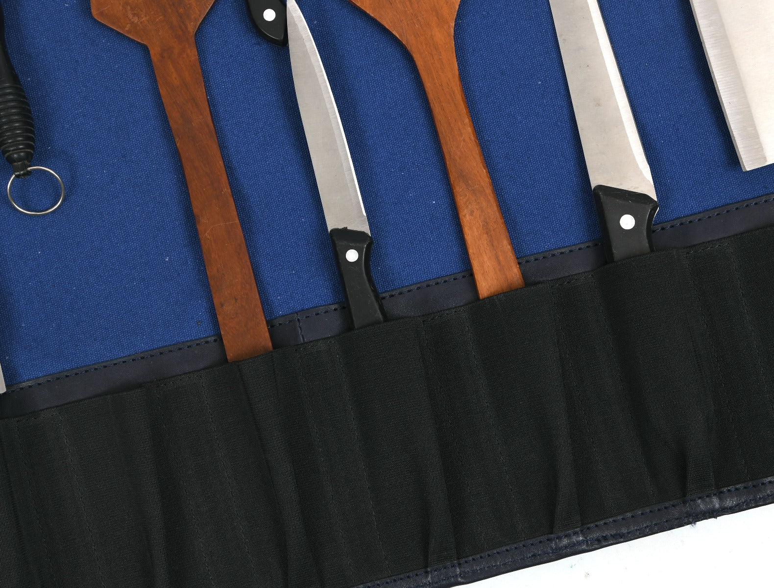 - The interior also has a long Zippered compartment on the corner to keep intact other essential tools. The Knife Roll is apt for safety and is the go to safety kit for all those who are involved in chopping, cutting & cooking.