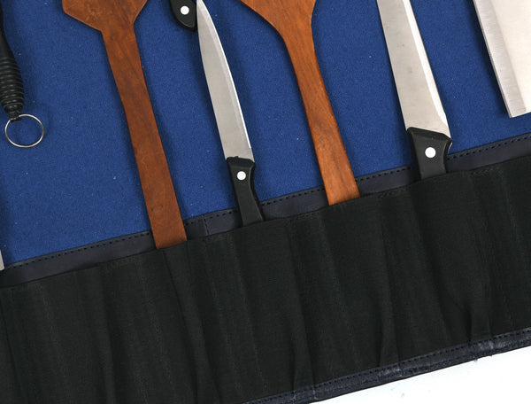 Knife skills are necessary but the safety provided by a Knife Roll is critically important. Malaga Canvas Knife Roll from Aaron Leather Goods is the product of the future with focus on safety, utility, diversity and usage. It is a compact yet essential tool for the Professional Chef's and is a blessing in disguise for the Cooking and chopping industry.