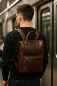 Aaron Leather Goods backpack is perfect for your everyday adventures. It features a durable canvas material that is water resistant and has a sleek design. This bag can carry all of your belongings, such as your laptop, books, and anything else you might need for the day. With this backpack, you'll be able to explore new places without having to worry about what you're carrying.