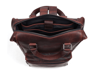 • Crafted from authentic leather, this bag boasts ample storage and functional features. The front showcases a convenient zipper pocket while the interior boasts a zippered compartment, sleeve pocket, and three open holders on one side. On the other side, you'll find a designated laptop compartment and a sleeve pocket. The long leather handle offers effortless carrying, while the adjustable shoulder strap provides optimal comfort. A perfect combination of style and practicality, this bag is a must-have for on-the-go professionals.
