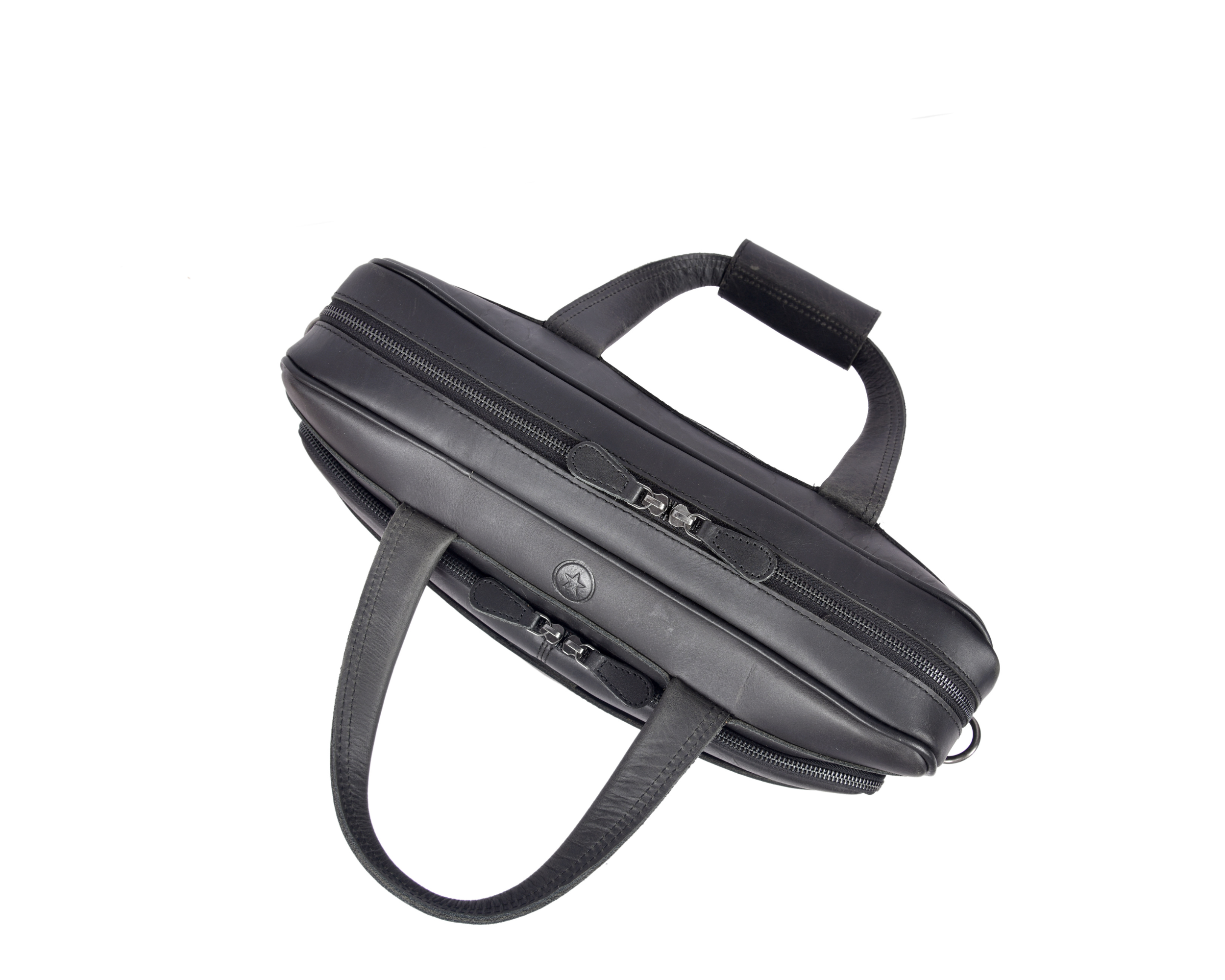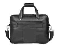 Handcrafted from 100% genuine full-grain leather, this bag exudes timeless elegance with its sleek black finish and premium metal fittings. Whether you’re heading to the office, a client meeting, or traveling for business, this leather laptop bag is built to carry it all—your laptop, files, and essentials—while keeping you stylish and organized.