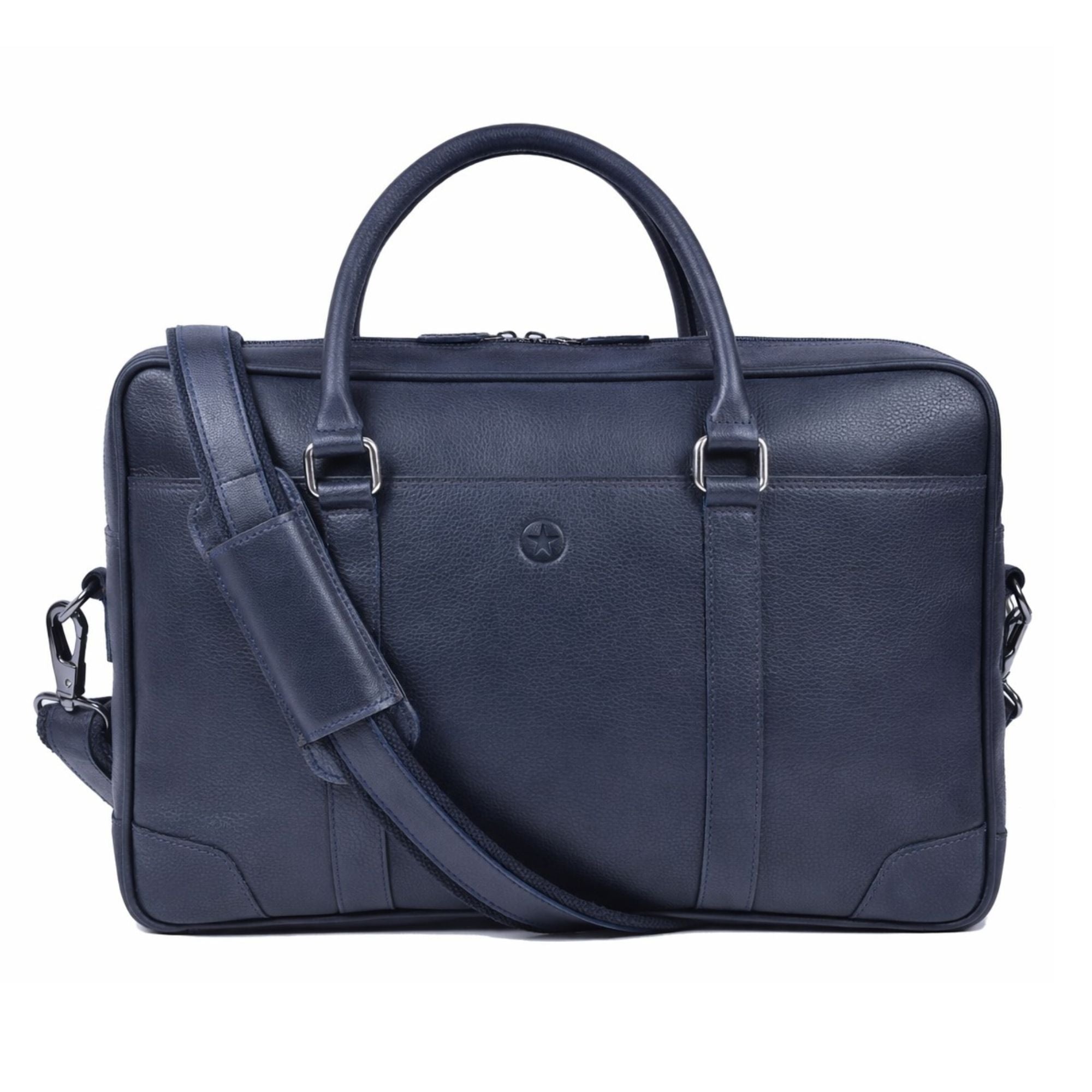 Premium Blue Leather Laptop Briefcase