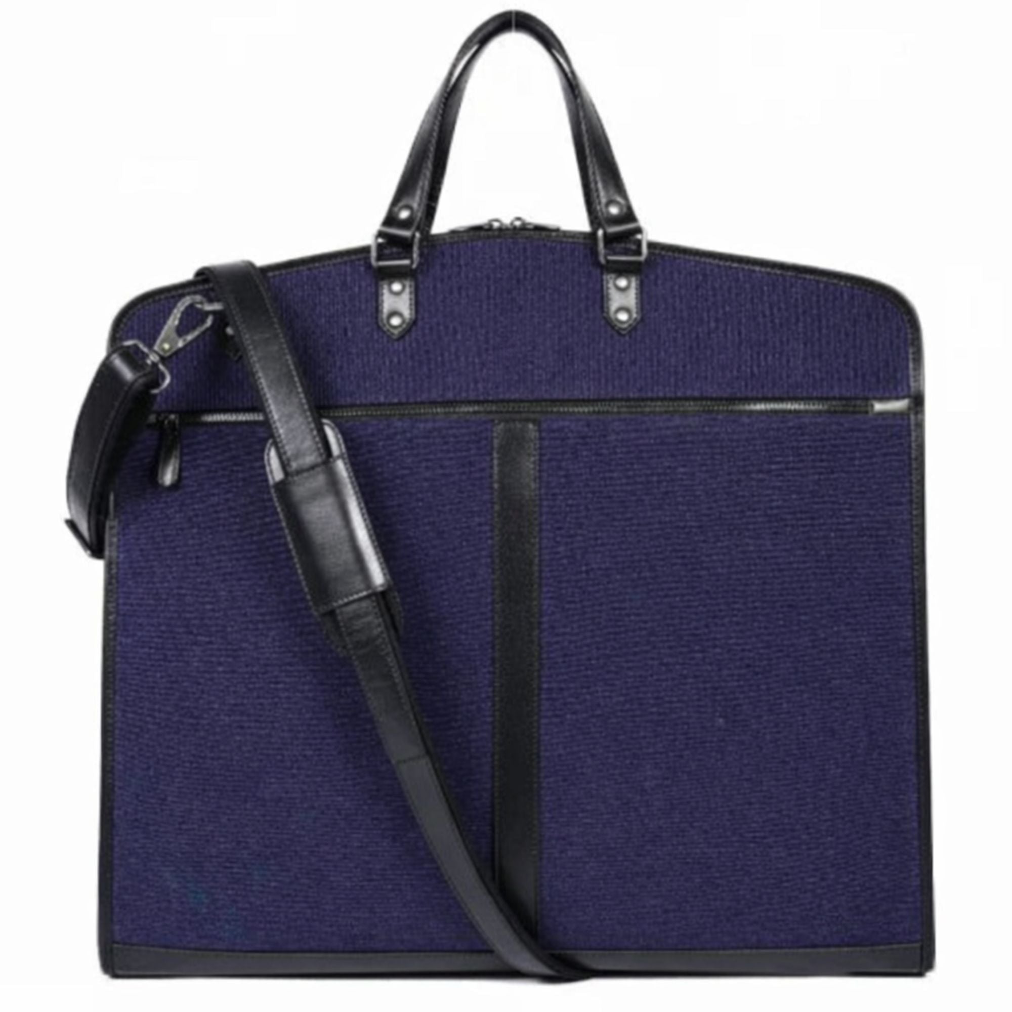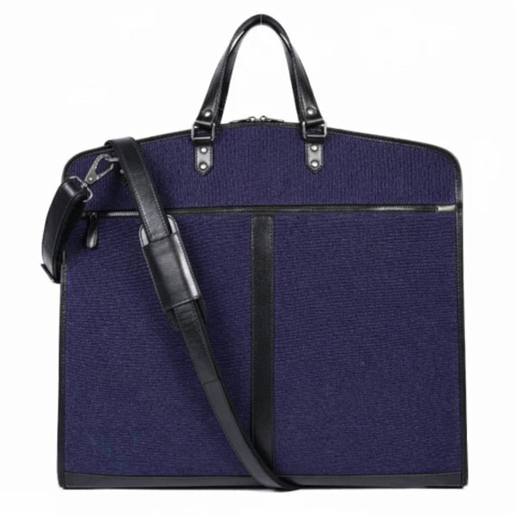 Navy Canvas & Black Leather Garment Bag