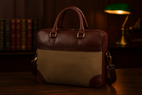 Introducing the Aaron Leather Goods Premium Leather & Canvas Laptop Briefcase, a sophisticated fusion of heritage craftsmanship and contemporary utility.