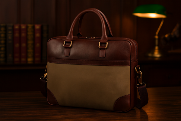 Crafted for the gentleman who values precision and poise, this leather and canvas briefcase carries more than essentials — it carries character. Whether you’re walking into a boardroom, catching a flight, or stepping into your favorite café, the rich brown full-grain leather and olive canvas tell a story of craftsmanship, ambition, and timeless elegance.