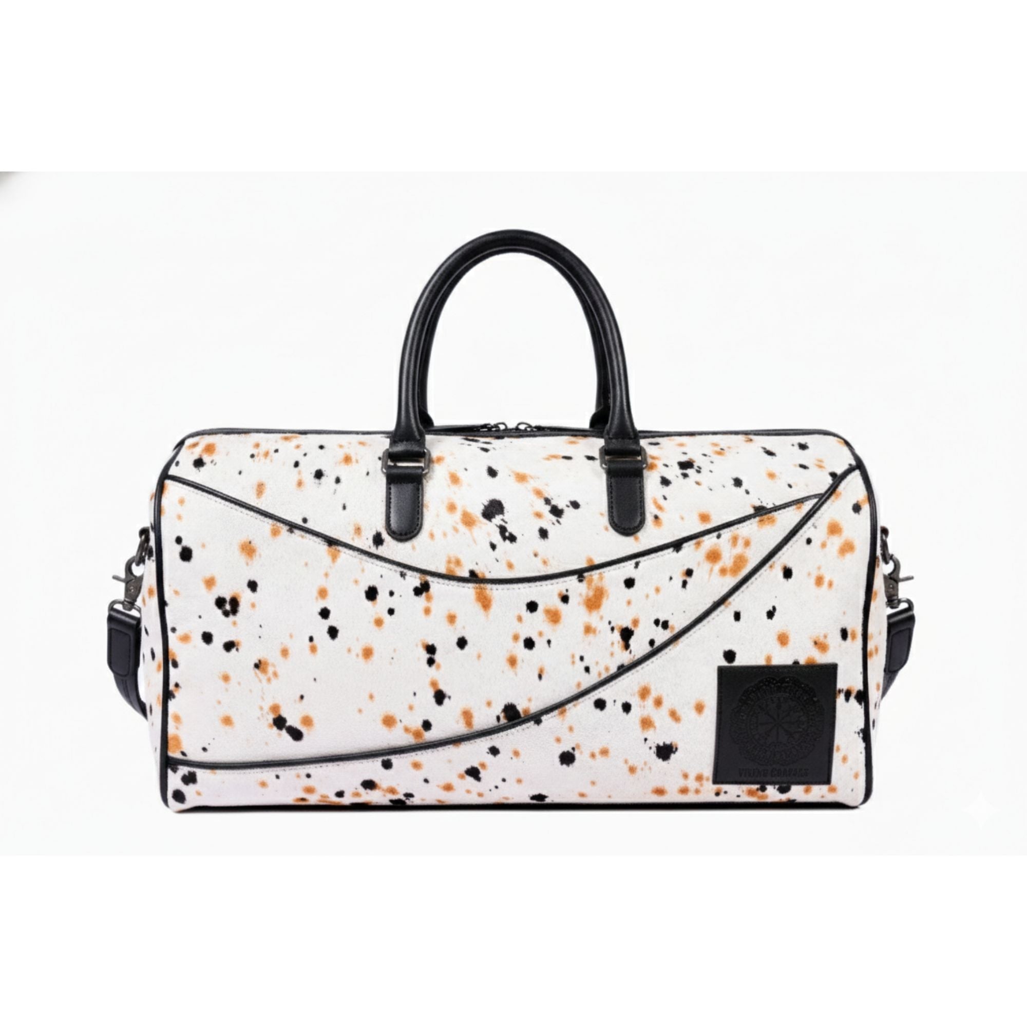 Stand out wherever you go with this statement white leather duffle bag featuring an artistic splatter pattern. Expertly crafted from premium leather, it offers a structured shape, ample storage space, and reliable hardware. Whether used for travel, fitness, or daily carry, this bag delivers a bold look without compromising on comfort or durability.