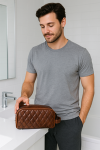 Quilted Leather Toiletry Bag – Premium Travel Dopp Kit