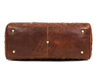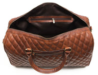 Spokane Diamond Stitched Leather Texture Weekender Bag - Shiny Brown