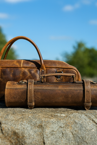 -The Knife Bag has an all leather round handle for grab and go functionality along with an adjustable Leather Strap for ease in carrying the Knife Roll.