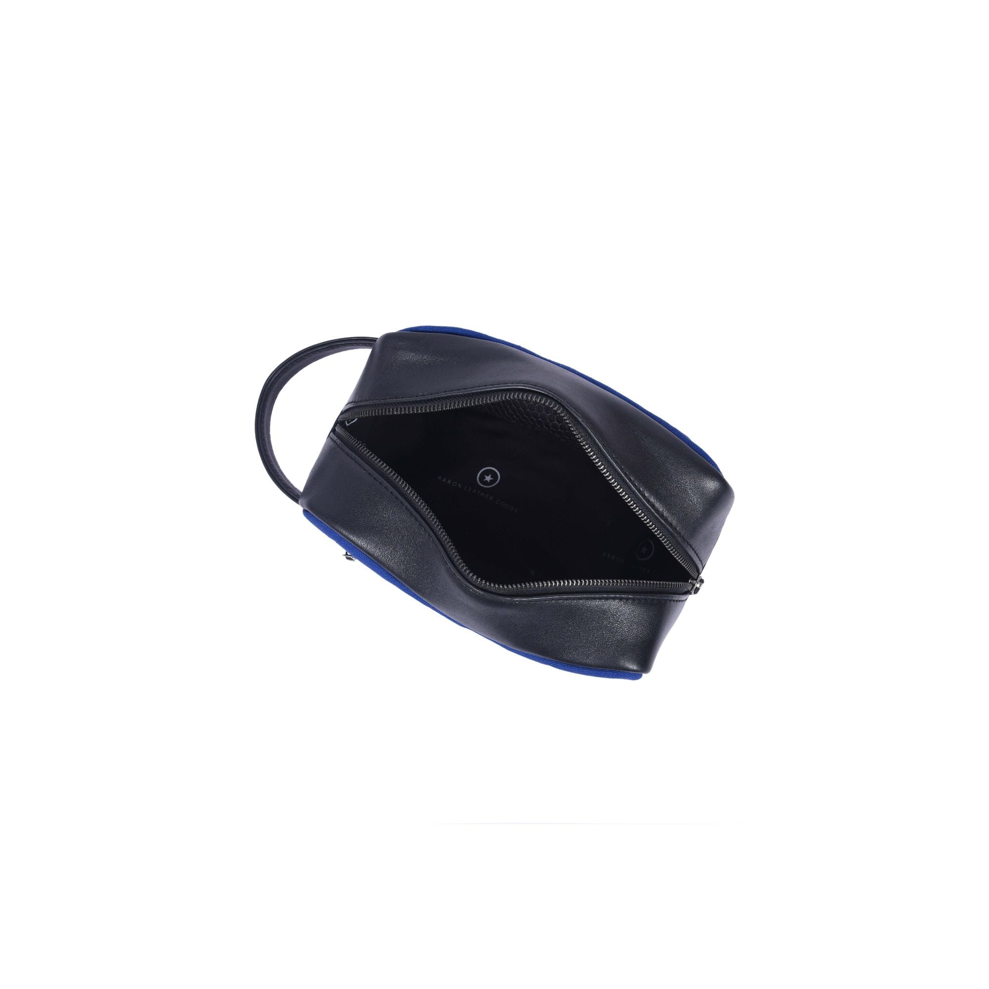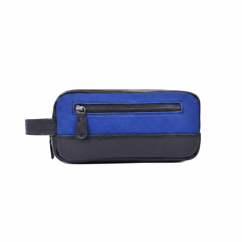 Blue Canvas & Black Leather Zipper Toiletry Pouch