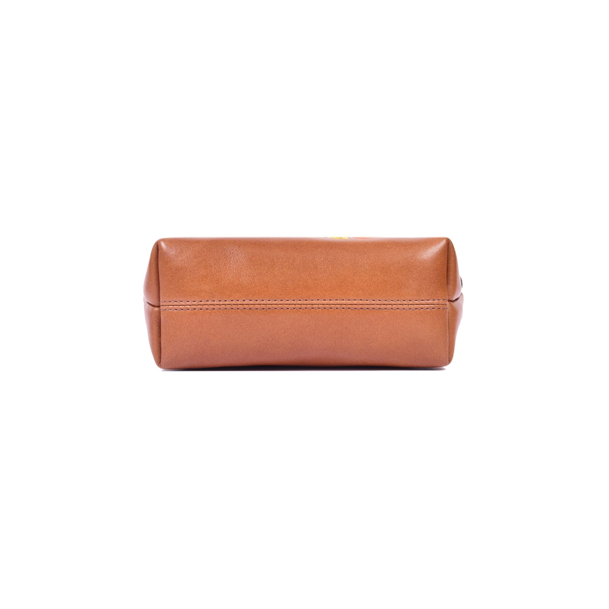 Crafted from premium-quality brown leather, this elegant cosmetic pouch blends timeless style with artisanal charm. The front is beautifully adorned with delicate floral embroidery, adding a vibrant, feminine touch to its classic design. A smooth top zip closure keeps your essentials secure while allowing easy access on the go.