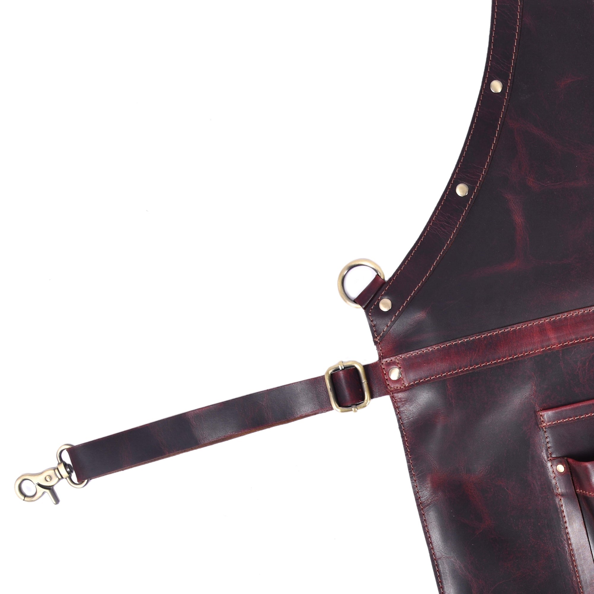 Designed for long hours at the workbench, grill, or studio, the apron features an ergonomic cross-back harness that evenly distributes weight across the shoulders, reducing neck strain. Solid brass hardware, reinforced rivets, and heavy stitching ensure it stands up to heat, tools, and daily wear without compromise.