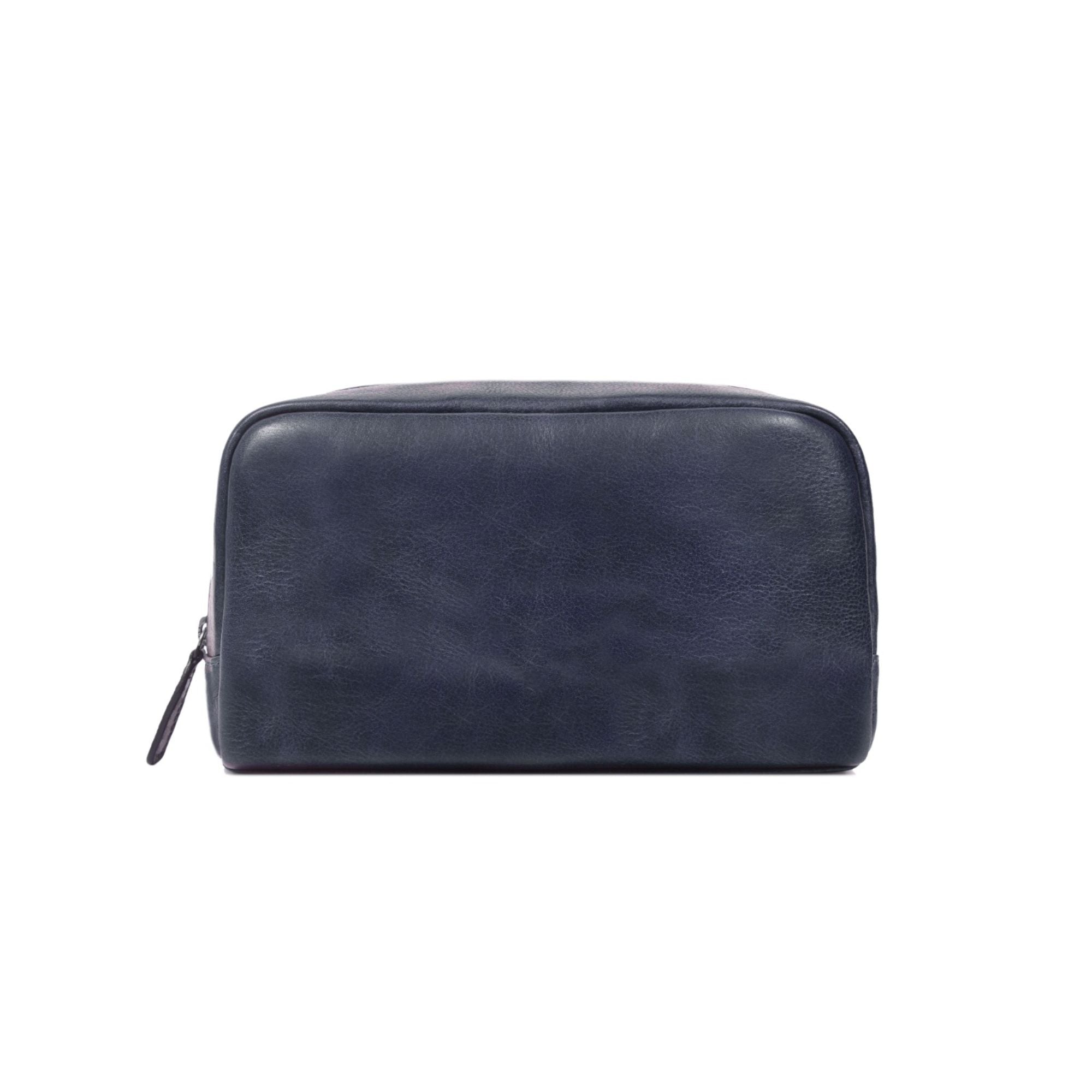 Premium Full-Grain Leather Toiletry Pouch in Classic Blue