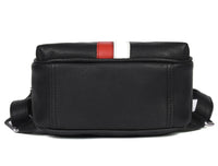 Стильный черный кожаный мини-рюкзак с красно-белой полосой – компактная дорожная и повседневная сумка